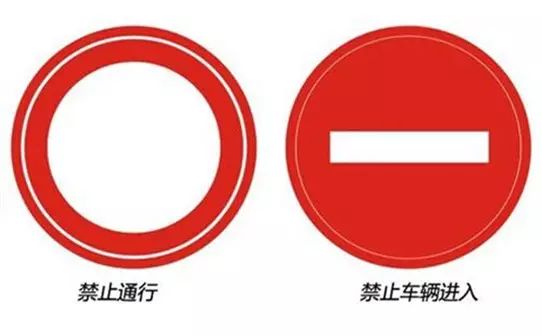圆圈里面有一道杠就是禁止驶入,一般多用于单行道,准出不准入。大圆套小圆就是禁止通行。